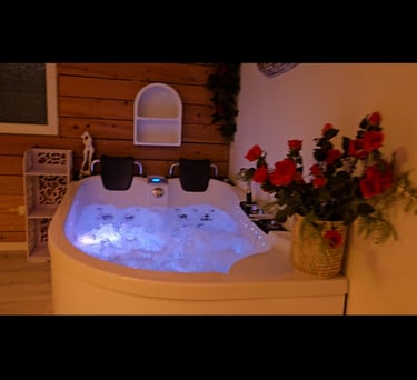 ✔ Jacuzzi privatif, pour des instants de détente absolue sous une lumière tamisée.